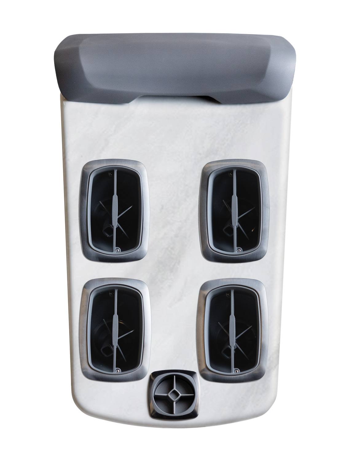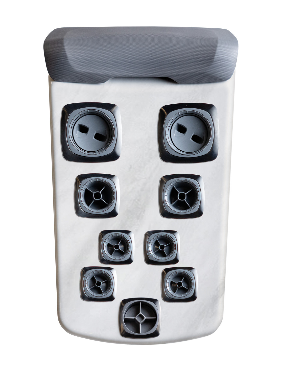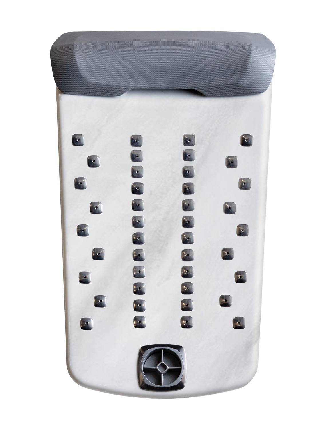 Sa chaise longue ergonomique, avec appui des genoux pliés, peut être équipée du JetPak® de votre choix et comprend des jets ciblant les poignets, les hanches, les mollets et les pieds pour une détente complète.