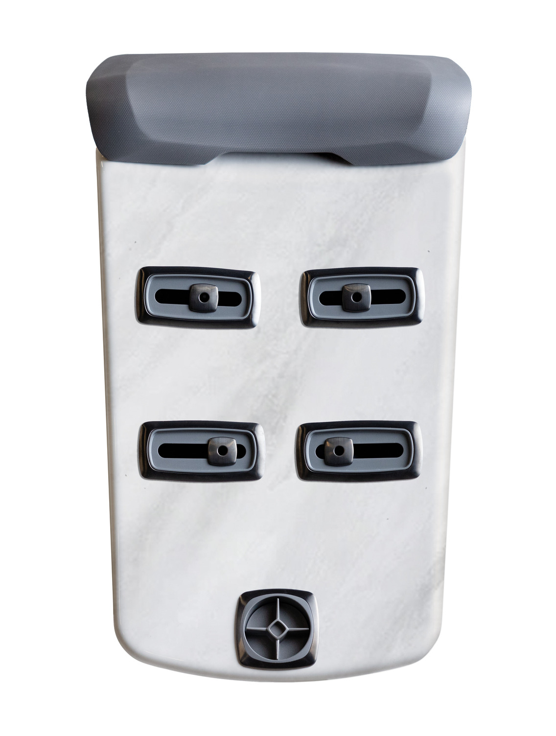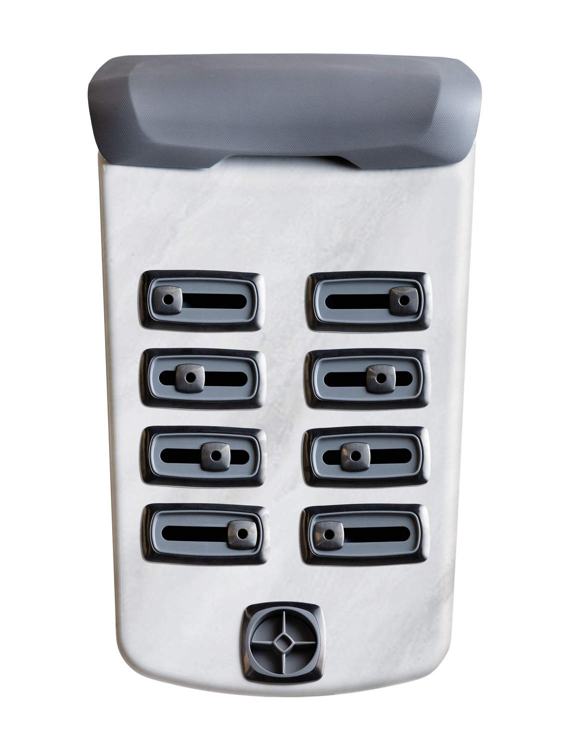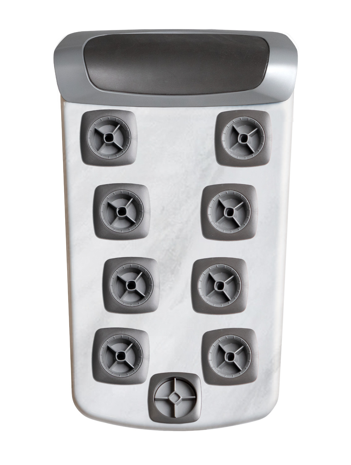 Sa chaise longue ergonomique, avec appui des genoux pliés, peut être équipée du JetPak® de votre choix et comprend des jets ciblant les poignets, les hanches, les mollets et les pieds pour une détente complète.