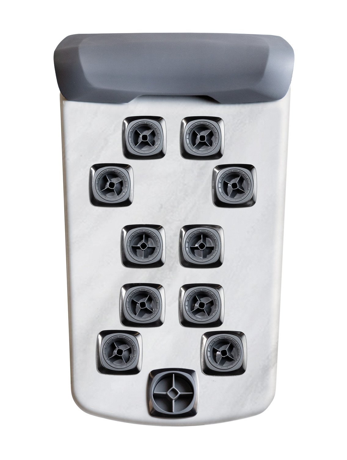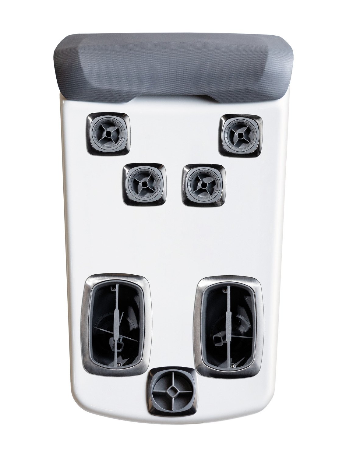 Option JetPak® personnalisable : choix des jets selon les zones (dos, épaules, etc.), jusqu’à 3 modules JetPak selon version.