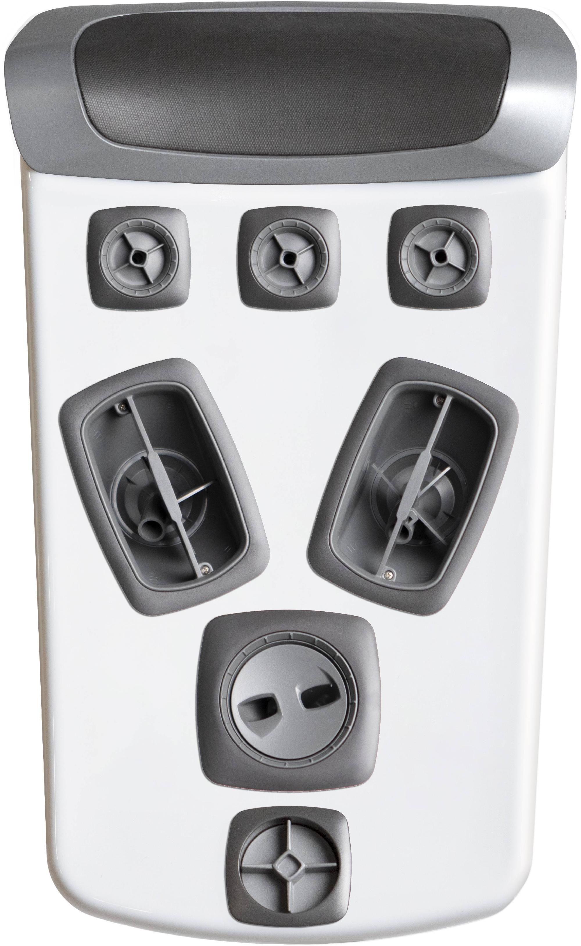 | Sièges | 5 sièges : dont 2 lounge premium pour massage des poignets, ischio-jambiers et mollets + 2 sièges JetPak Premium (ou possibilité 3 JetPaks selon version) |